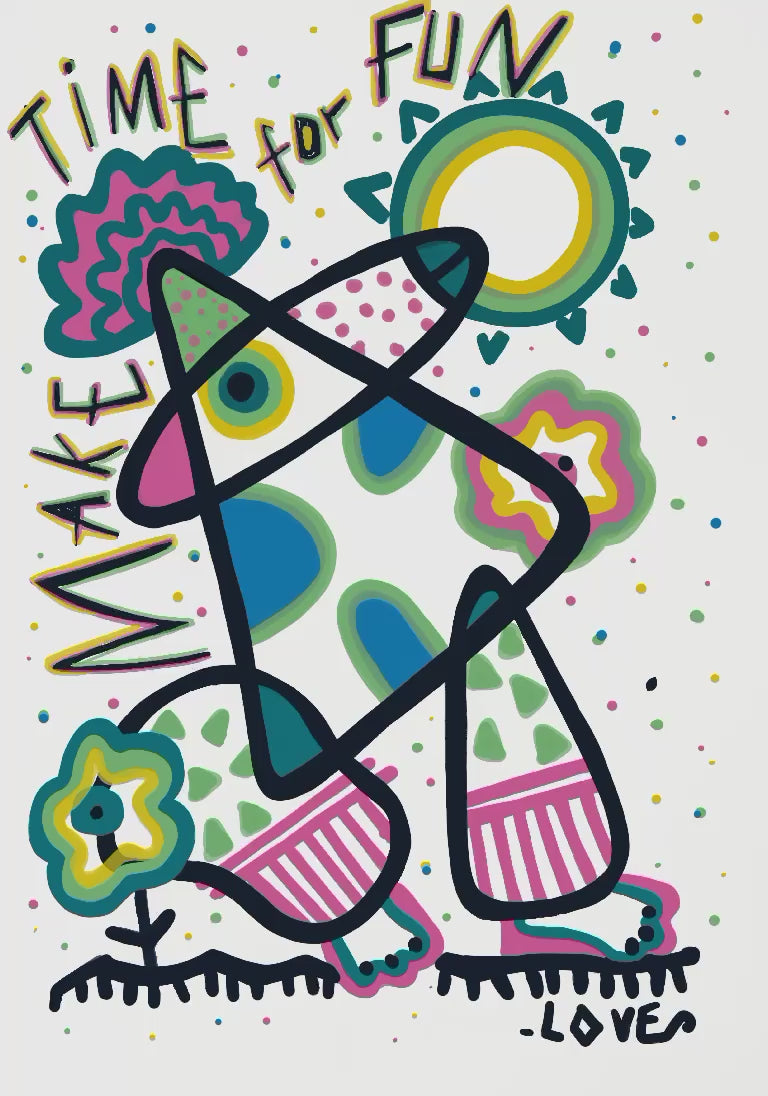 'Make time for fun' art-print is a daily reminder to embrace your inner child, let loose, and find joy in the simple things. It's a perfect addition to any space that needs a dose of color and positivity.